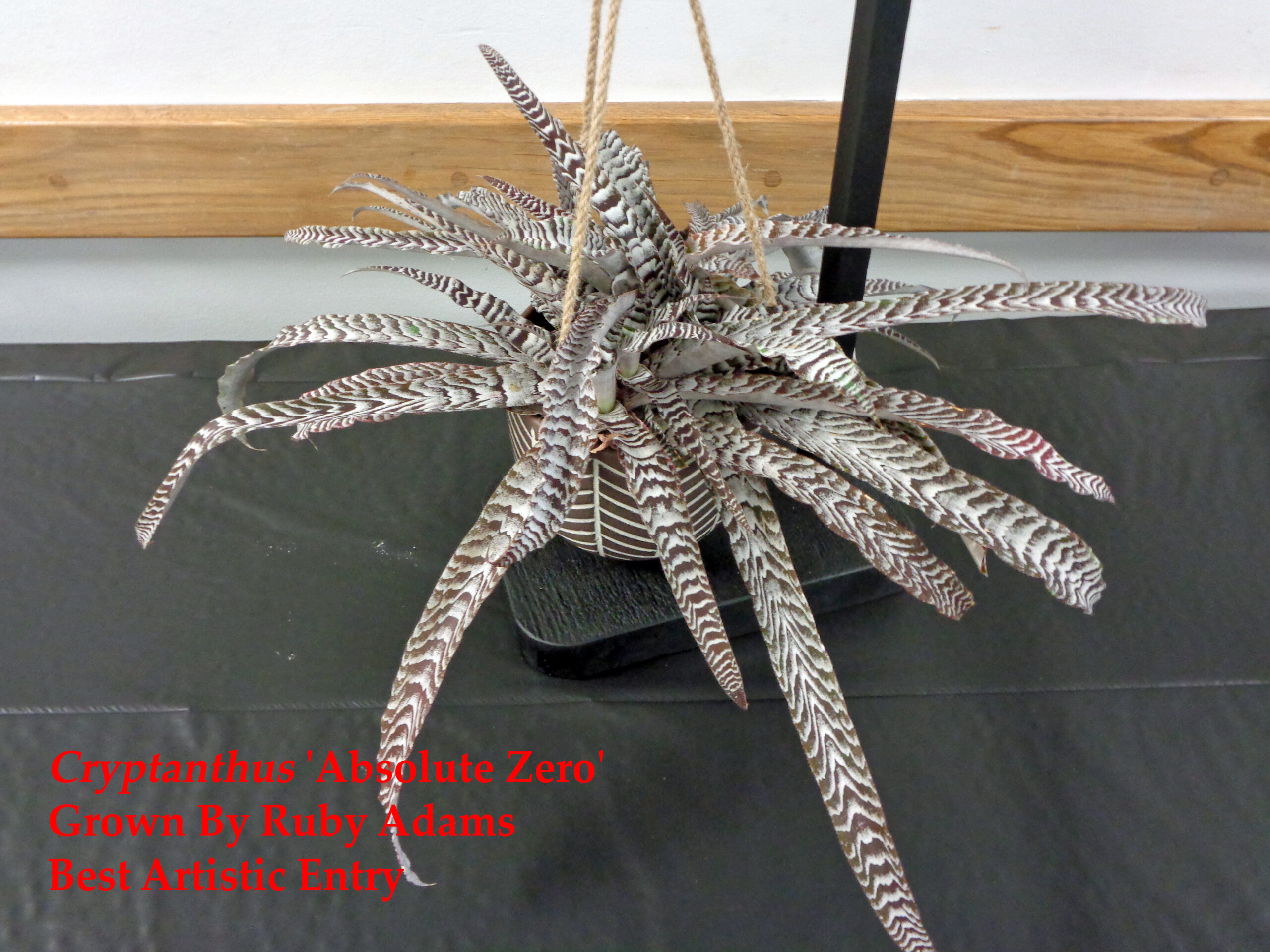 THE BOB WHITMAN BEST CRYPTANTHUS SPECIES Cryptanthus fosterianus âLisa Vinzantâ â Katie SmithBEST DECORATIVE CONTAINER â DIV V Cryptanthus marginatus â Ruby AdamsBEST INDIVIDUAL CRYPTANTHUS DIVISION I Cryptanthus âBeavâ â Ed EdmistonGRACE GOODE SILVER INGOT BEST CRYTANTHUS HORTICULTURE Rokautskyia microglazioui â Ed EdmistonMORRIS HENRY HOBBS BEST OF SHOW ARTISTIC _ MICHAEL YOUNG BEST OF SHOW ARTISTIC â Cryptanthus â Dr. Larry Giroux