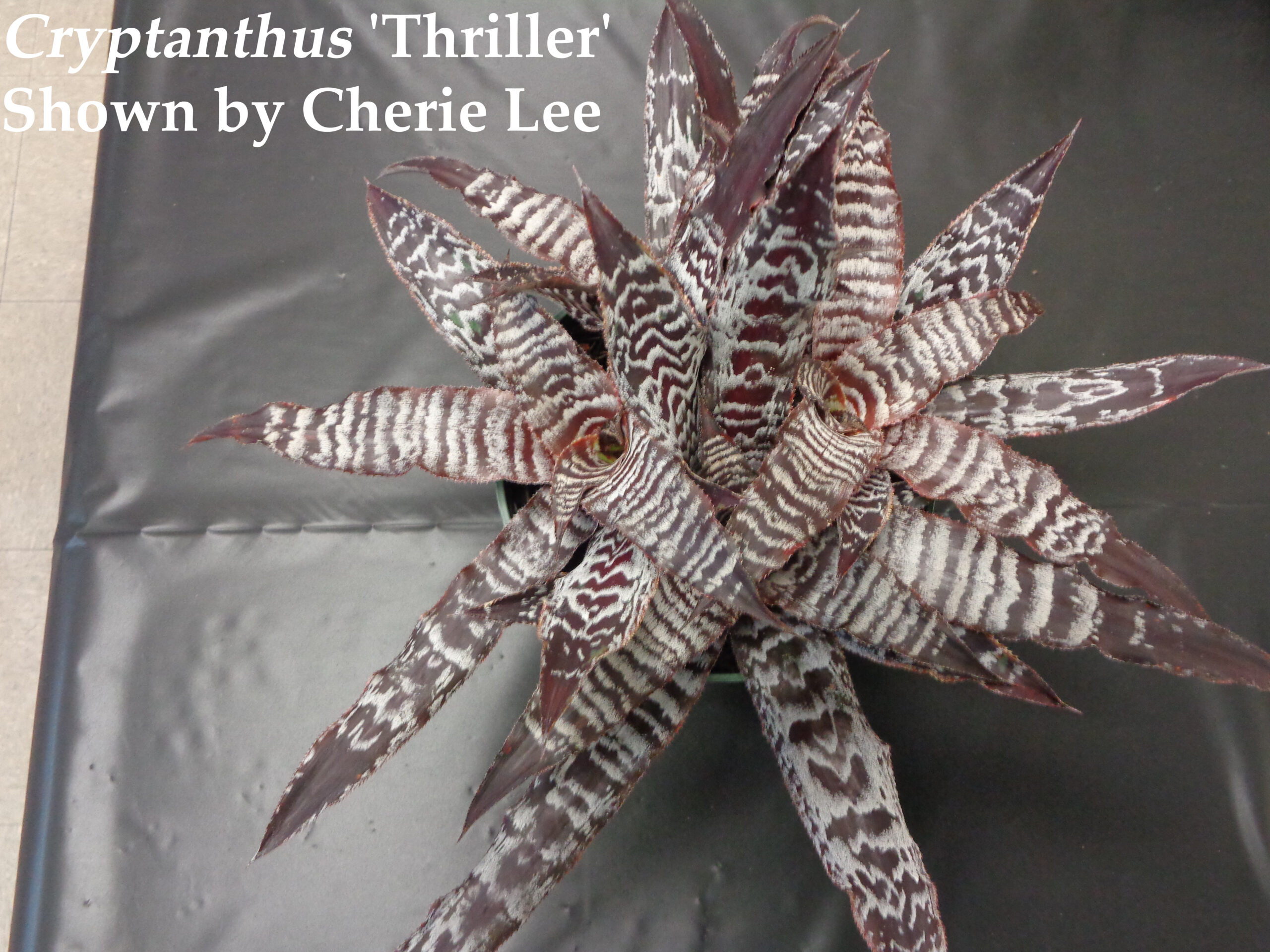 Mulford B. Foster Best of Show Horticulture Encholirium horridum J. SchmidtMorris Henry Hobbs Best of Show Artistic Crypt âLiving Colorsâ L. WhipkeyMembersâ Choice -Billbergia viridiflora D. WhipkeyThe Warren Loose Best Cryptanthus Hybrid Crypt âThrillerâ C. LeeThe Odean Head Most Eye Catching Neoregelia âSavoy Truffleâ C. Richtmyer