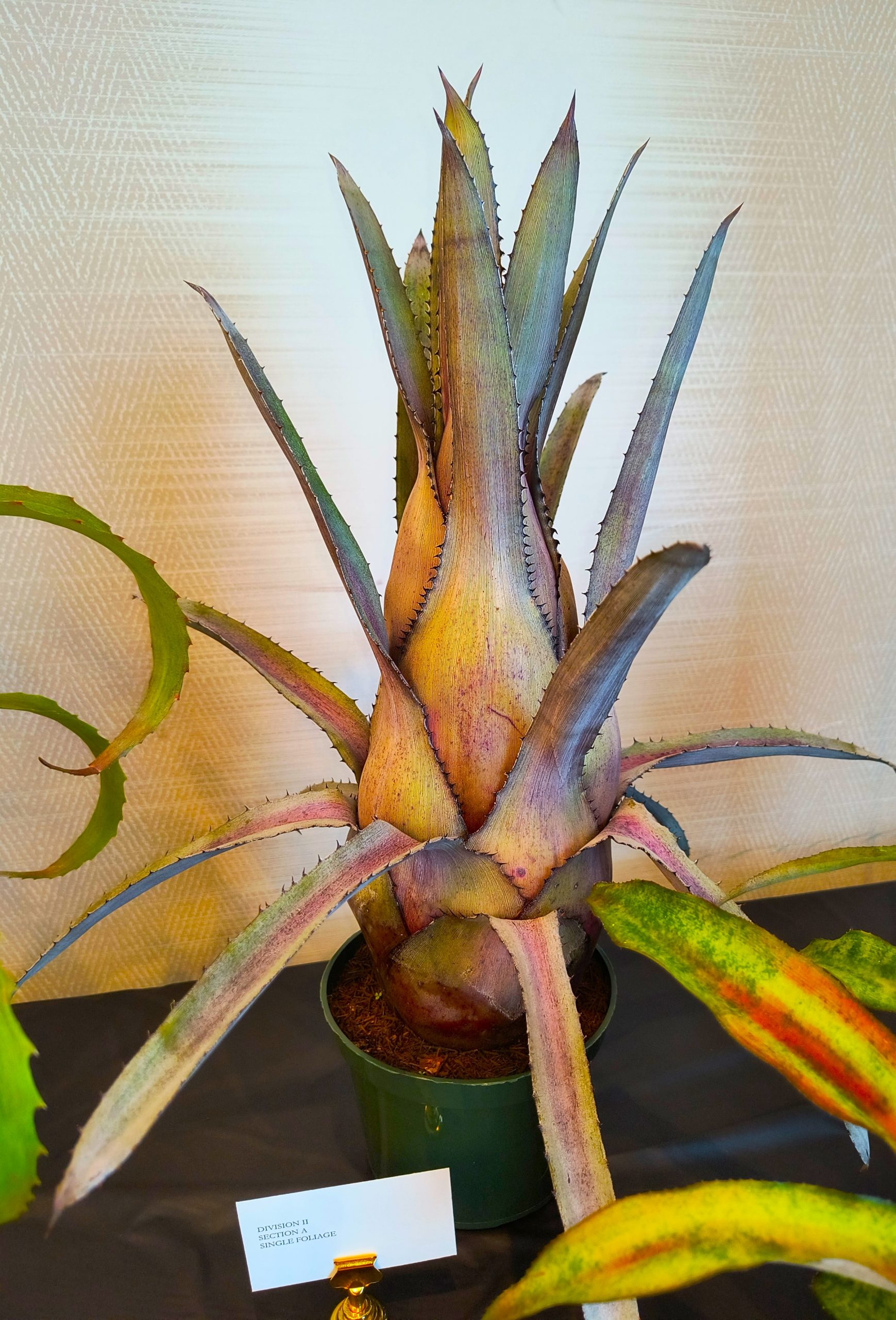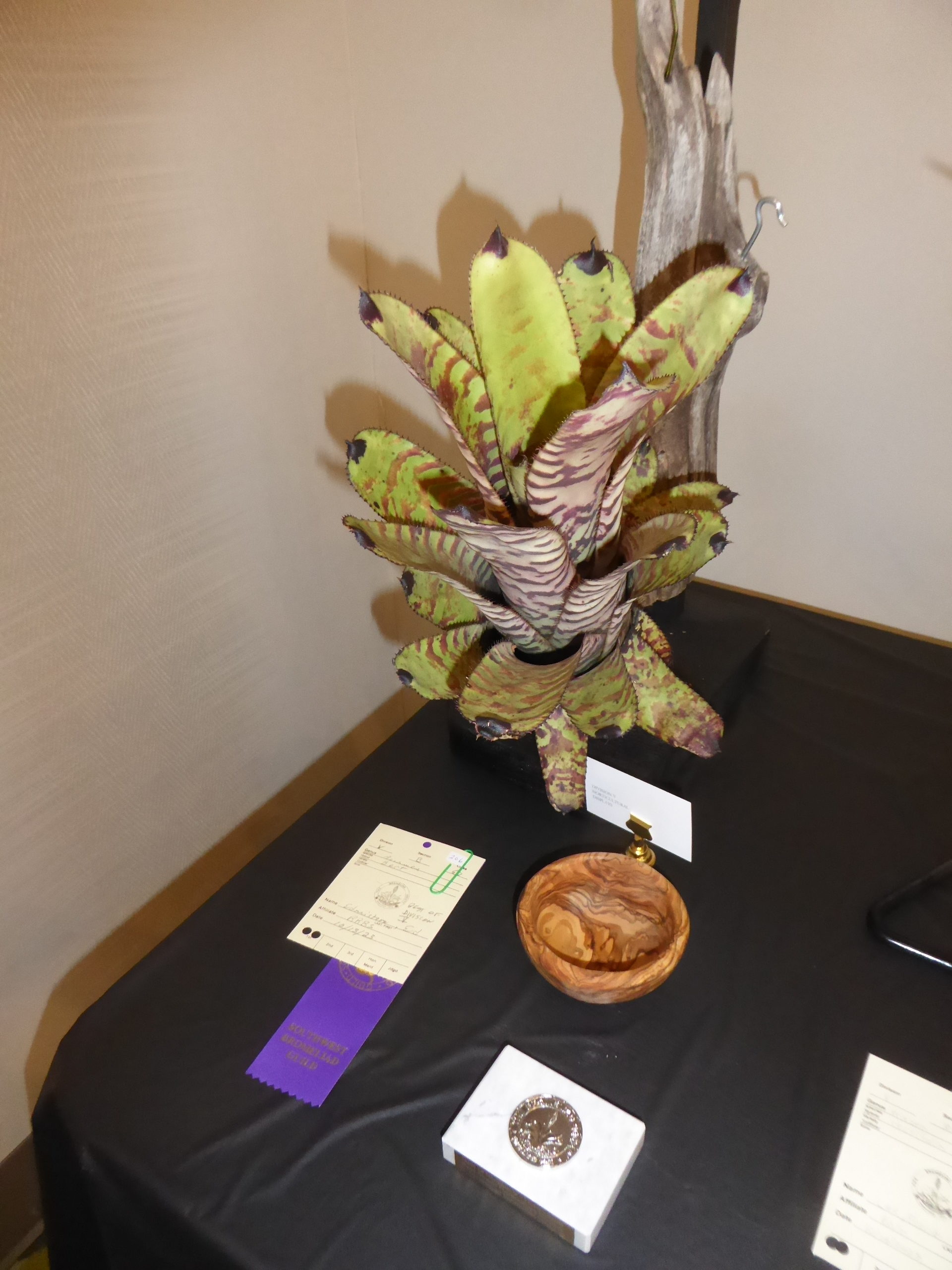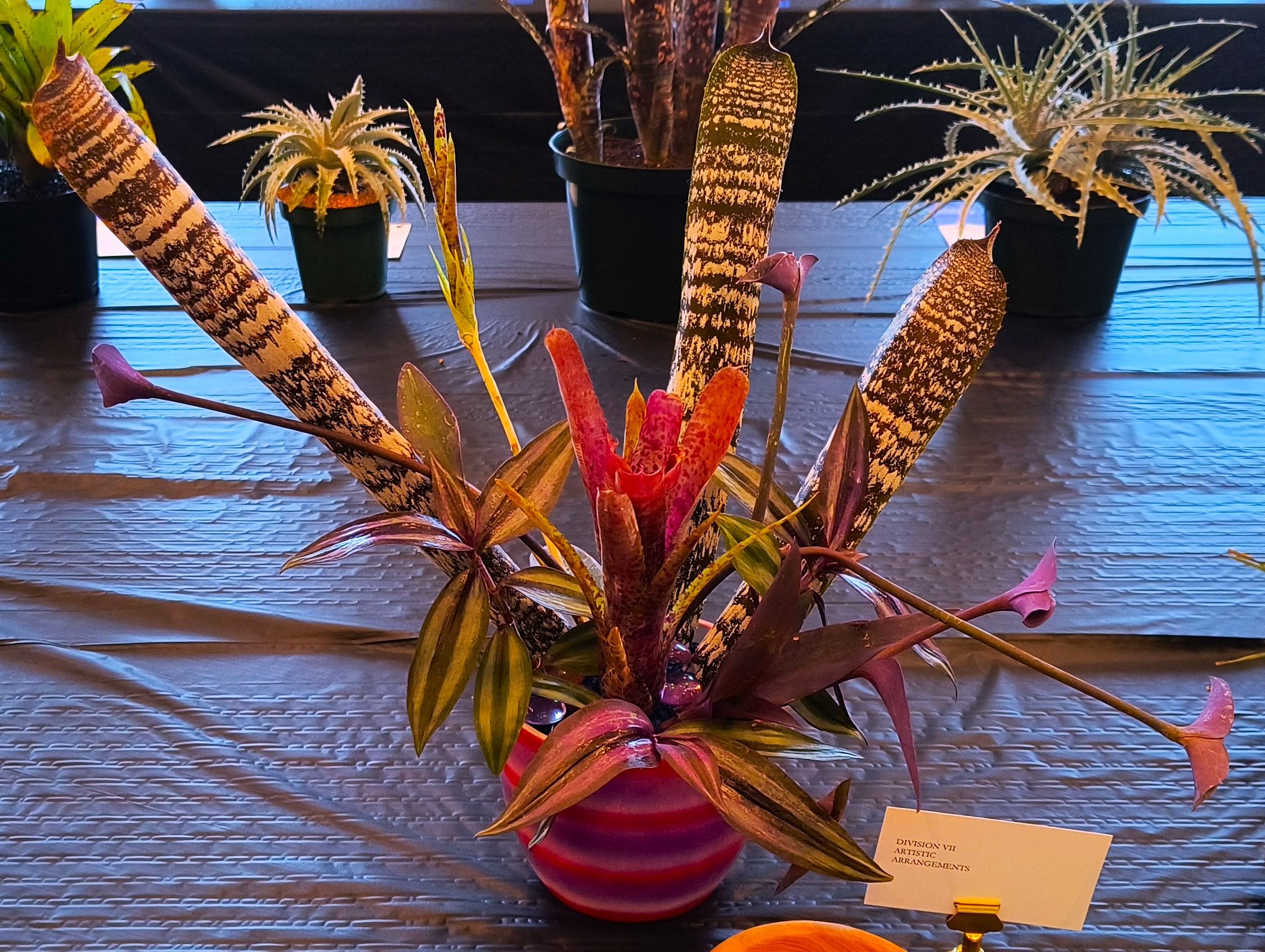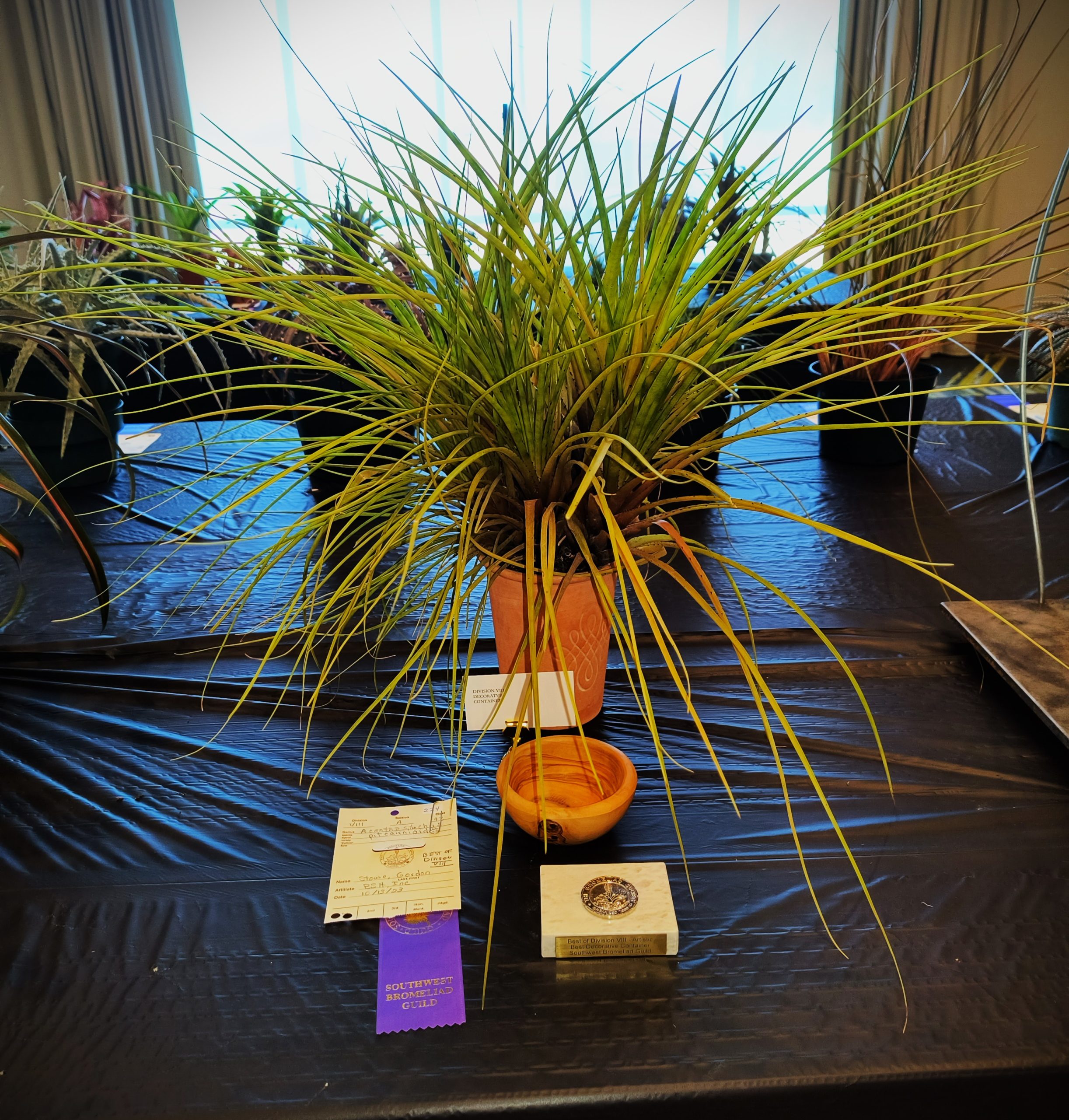 THE BOB WHITMAN BEST CRYPTANTHUS SPECIES Cryptanthus colgnaii – Frank LeeMORRIS HENRY HOBBS BEST OF SHOW – ARTISTIC Neoregelia pauciflora – Josh SmithTHE JOHN M. ANDERSON BEST AECHMEA Aechmea phanerophlebia – Cherie LeeHOBBYIST SWEEPSTAKES Hohenbergia magnispina ‘Karla’ – Cherie LeeTHE WARREN LOOSE BEST CRYPTANTHUS HYBRID Cryptanthus ‘Strawberries Flambe’ – Frank LeeTHE VALERIE L. STECKLER HORT. DISPLAY SWEEPSTAKES Tillandsia mallemontii – Frank LeeBEST OF DIVISION II Bromelia agavifolia – Frank LeeBEST OF DIVISION II SECTION A Hohenbergia catingae – Cherie LeeBEST OF DIVISION III Wallesia cyanea variegata – Cherie LeeBEST OF DIVISION III SECTION A Cryptanthus ‘Ruby Port’ – Frank LeeBEST OF DIVISION IV Hohenbergia edmundoi – Cherie LeeBEST OF DIVISION V SECTION B Vresia rectifolia – Frank LeeBEST OF DIVISION V Aechmea ‘Bert’ Ed EdmistonBEST OF DIVISION VI SECTION A Wallisia cyanea – Frank LeeBEST OF DIVISION VI SECTION B Orthophytum ‘Red Frost’ – Frank LeeBEST OF DIVISION VI Tillandsia streptophylla x concolor – Bryan WindhamBEST OF DIVISION VII Hohenbergia correia-araujoi and Neorgelia pauciflora (Theme Purple) – Alicia BakerBEST OF DIVISION VIII Acanthostachys pitcairnioides – G. StoweMULFORD B FOSTER BEST OF SHOW – HORTICULTURE Tillandsia duratii – Mitch Fontenot